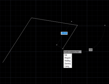 Jest to alternatywny sposób wprowadzania komend za pomocą interfejsu linii poleceń bezpośrednio w kursorze myszy. Można wprowadzić takie dane, tak jak długość linii i promień okręgu o dynamicznej wizualizacji zmian w podczas ruchów myszką. ![]() |