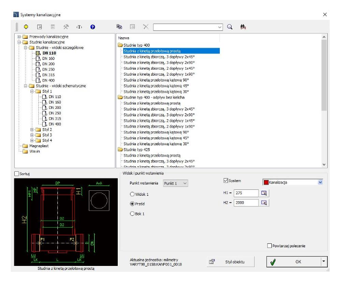 Do polecenia Systemy kanalizacyjne dodano studnie kanalizacyjne w widoku szczegółowym oraz widokach schematycznych.