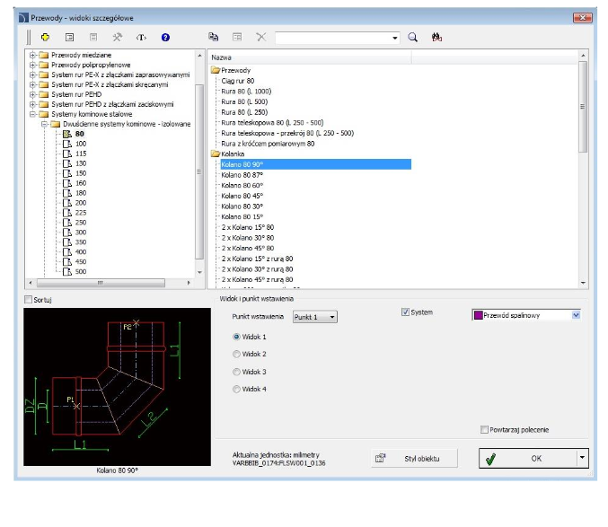 Do polecenia Przewody –widoki szczegółowe dodano izolowany dwuścienny system kominowy.W systemie można projektować kominy od 80 mm do 500 mm za pomocą rur i złączek (kolana, trójniki, odsadzki, wyczystki). Dostępne są również akcesoria (m.in. wsporniki, daszki, płyty fundamentowe, przejścia przez dach itd.).