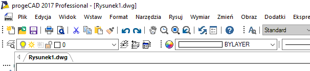 progeCAD ma do wyboru 2 różne interfejsy - Klasyczne menu i Kartowe "Wstążkowe" menu.
