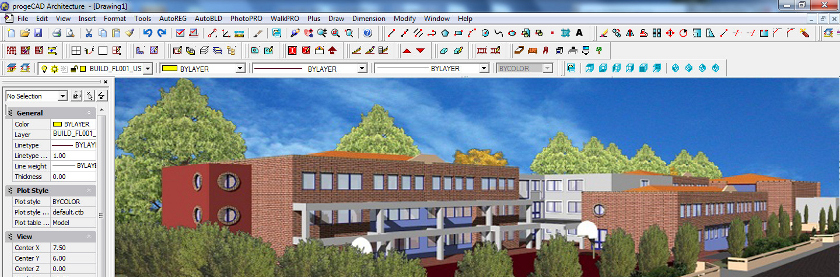 - Zaawansowany rendering dla architektury - progeCAD Architecture objemuje fotorealistyczny moduł, który wytwarza fotorealistyczną scenerię wysokiej jakości. Korzysta z bogatej biblioteki rzeczywistych materiałów z fakturami (drewno, kamień, marmur, dywany, itp), które mogą być wybierane w dowolny sposób, według potrzeb użytkownika.